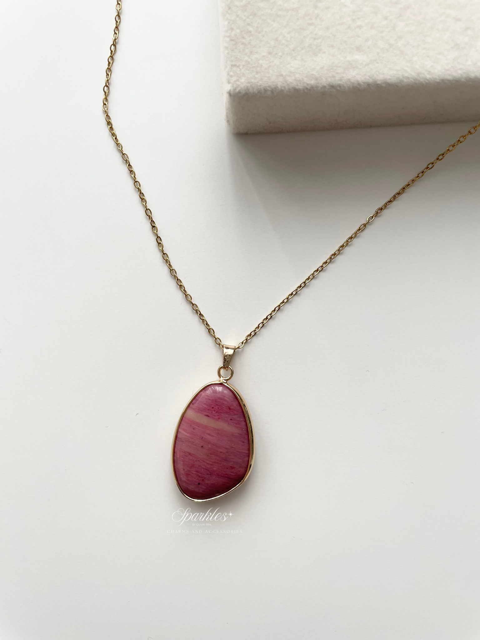 crystal7 Rhodocrosite Stone Gold Necklace