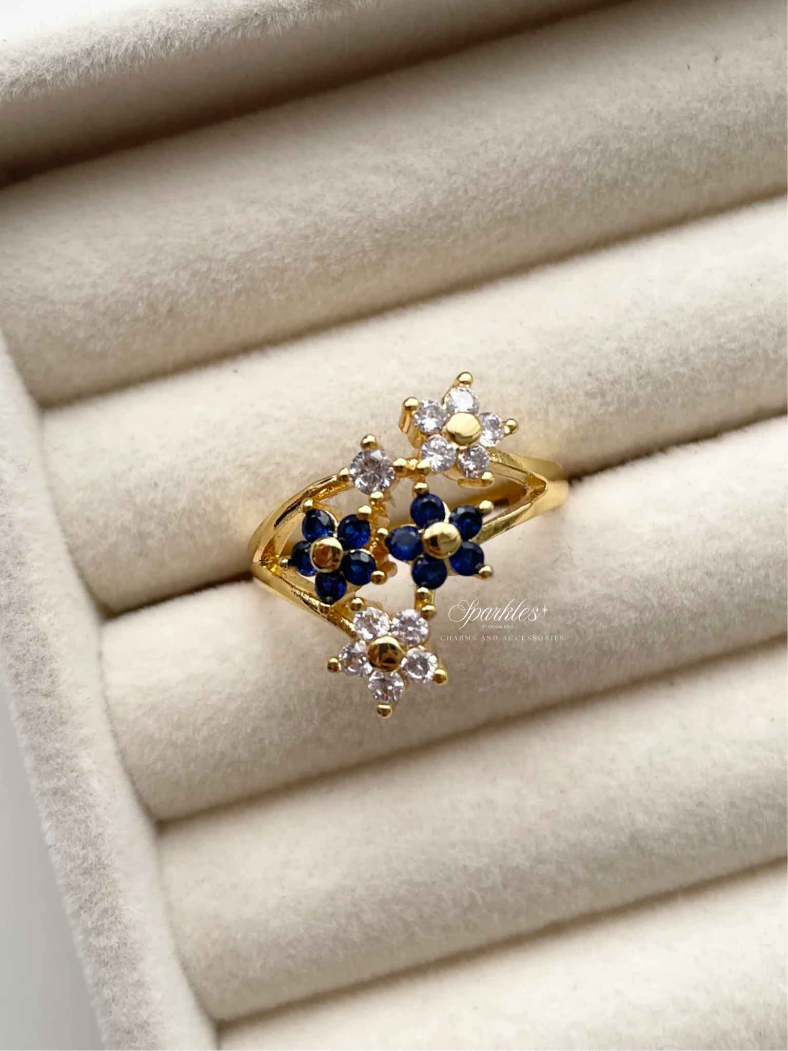 gr746 Blue and white stone gold ring